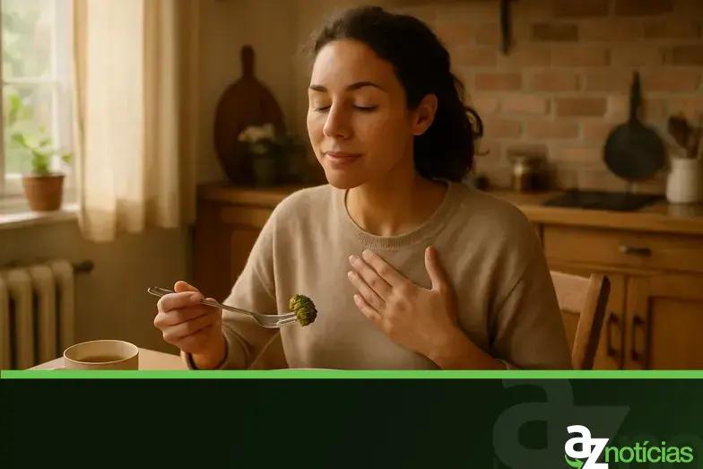 Comer com atenção plena ajuda a reconhecer melhor a fome e a saciedade, além de tornar a alimentação mais prazerosa, reduzindo episódios de exagero.